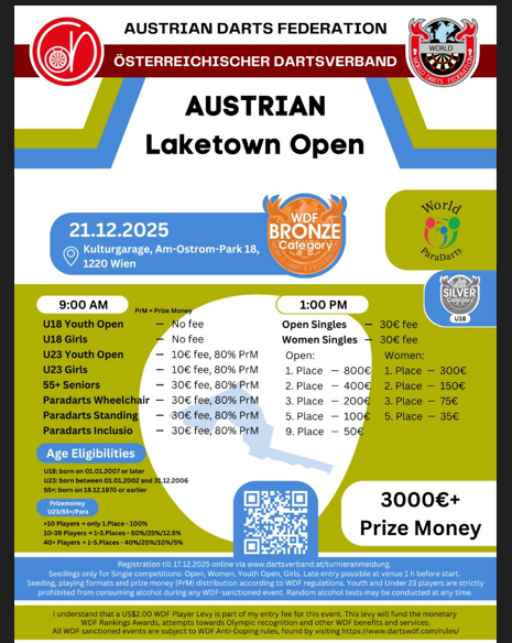 Austrian Darts Festival (consisting of 2 different tournaments: Saturday: "Lower Austrian Open 2026" and on Sunday "Death Angel Open 2026"